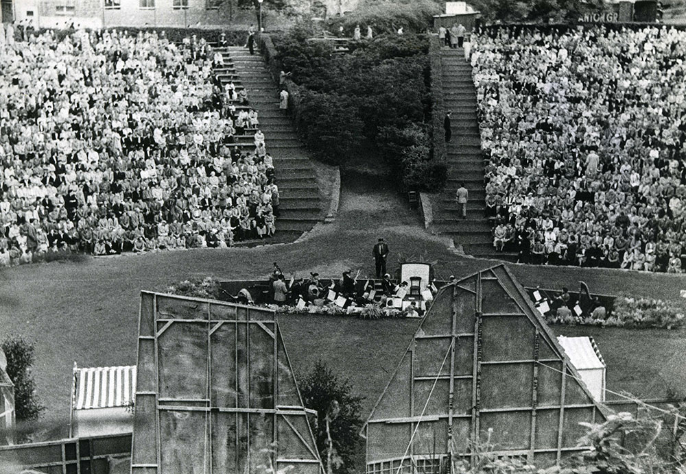 Da Open-Air-Veranstaltungen aber auch immer stark vom Wetter abhängig sind wurden dann solche Inszenierungen immer mehr an wettersichere Orte wie die 1957 wiederaufgebaute Stadthalle verlegt.