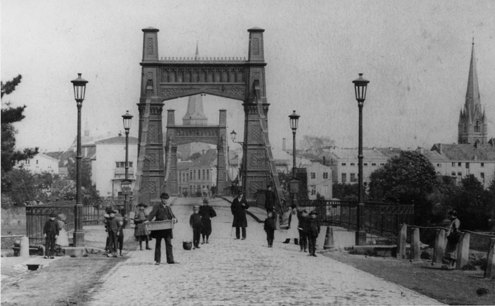 Nach über 50 Jahren im Dienst und etlichen Verstärkungen und Verbesserungen hat die Kettenbrücke ausgedient. Sie kann die Anforderungen, die an sie gestellt werden, nicht mehr erfüllen. Am 7. Oktober 1909 wird sie das letzte mal mit einem Fackelzug feierlich überquert und anschließend stillgelegt. Sie weicht einem moderneren, breiteren und belastbareren Bauwerk, welches sich noch heute an dieser Stelle befindet. Unsere Schloßbrücke. Doch dies ist eine andere Geschichte ...