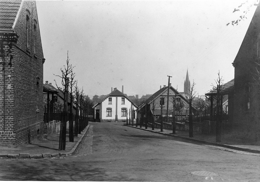 Am Anfang waren die Straßen und die Höfe der Siedlung nur geschottert bzw. mit Kesselasche gestreut. Um 1910 wurden zwar Bürgersteige mit Natursteinkanten angelegt, die Straße und auch der Gehweg blieben jedoch weiterhin geschottert. Viktor Kaplanowski, der 1912 in Haus Nr. 12 geboren wurde und mit mir noch untertage gearbeitet hat, erzählte mir, dass das immer ein fürchterlicher Dreck war.